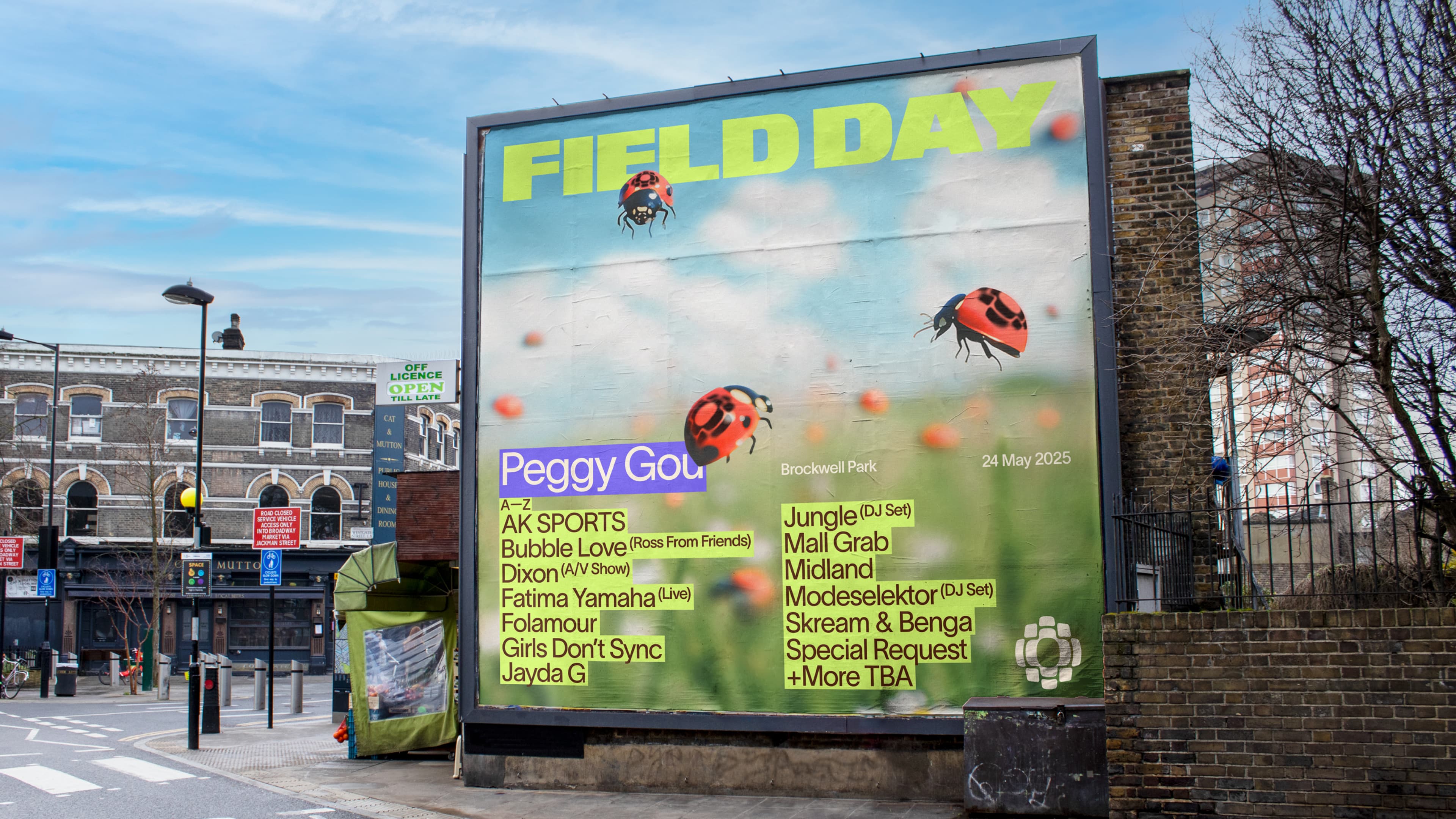 Our concept, Reactive Future, builds a dynamic identity that evolves each year, with the marque as its iconic foundation. For the 2025 campaign, we envisioned a surreal world beneath the festival’s surface, where the Reactive Future Bugs bring the energy of Field Day to life. These creatures embody the festival’s spirit, coexisting in an ever-shifting utopia that mirrors the fusion of music and culture.