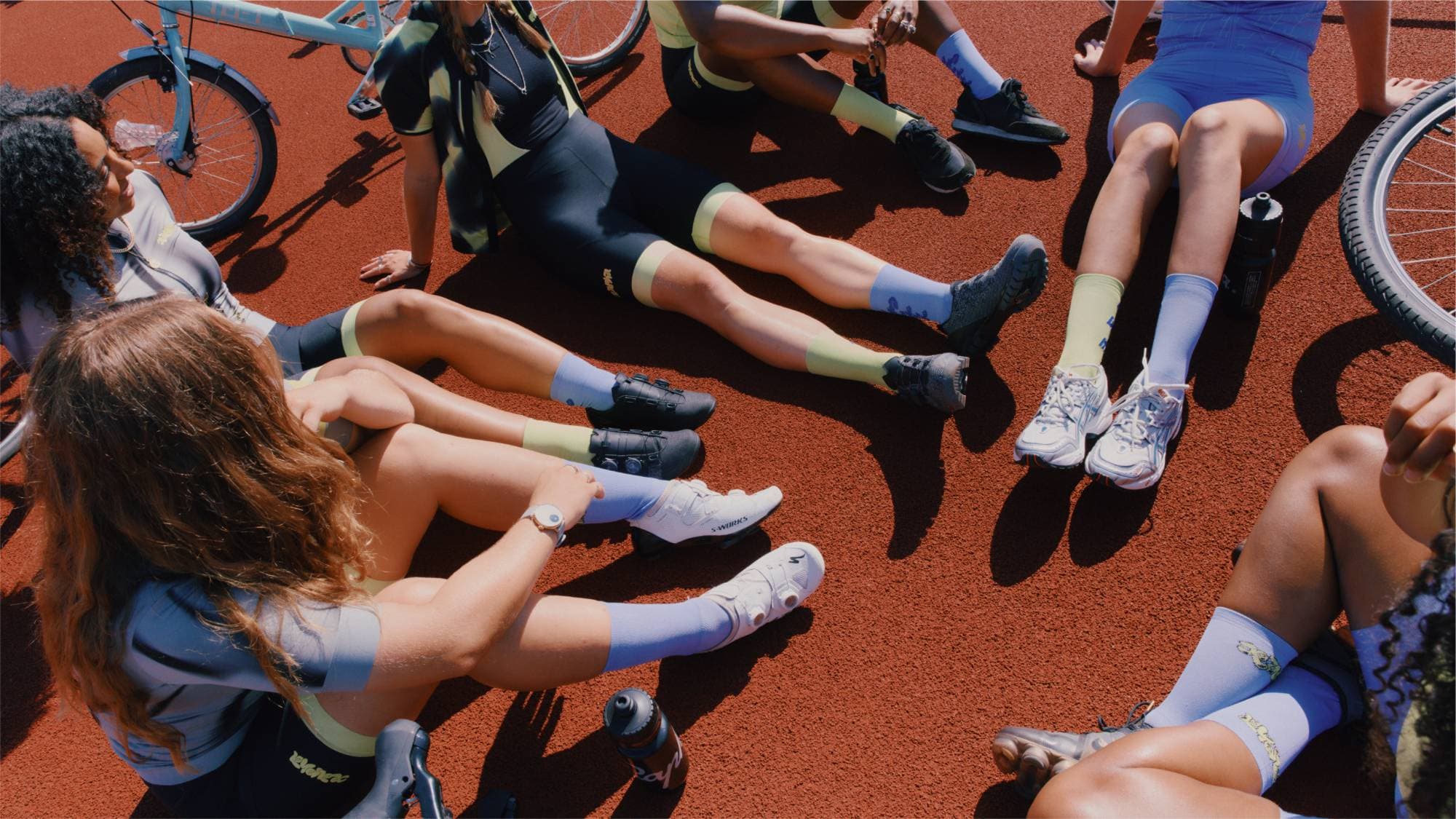 The resulting kit features whimsical, intertwining typography that visually conveys the sense of community coming together. This design creates an uplifting aesthetic that reflects the mutual support among the members. Unapologetically expressive, the kit embodies the energy, play, and people at the heart of the Rapha Women’s 100 Community, moving with the rider and embodying the spirit of the group with every pedal stroke.